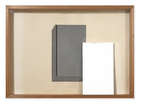 Cartoncino, cemento su fondo bianco